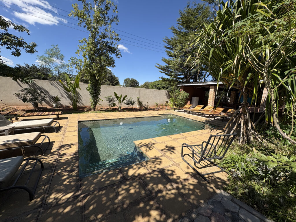 The next day, I let go of my itinerary and gifted myself a slow start. I moved into a countryside Airbnb cottage with Starlink internet, backup power, a pool, and lush gardens—expensive by Zambian standards, but perfect for remote work and decompressing.