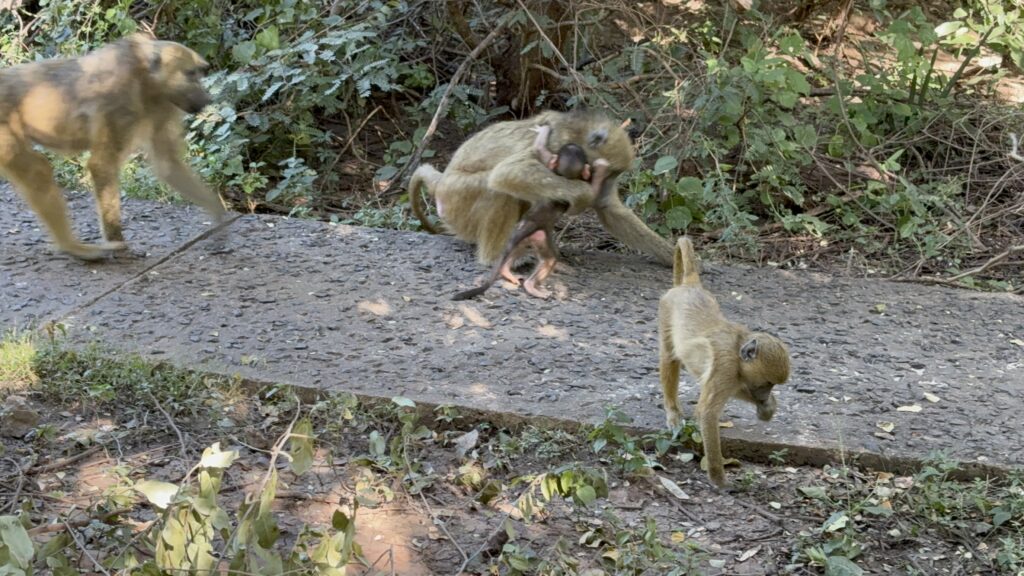 • Got surprised by a troop of baboons foraging near the WWI memorial