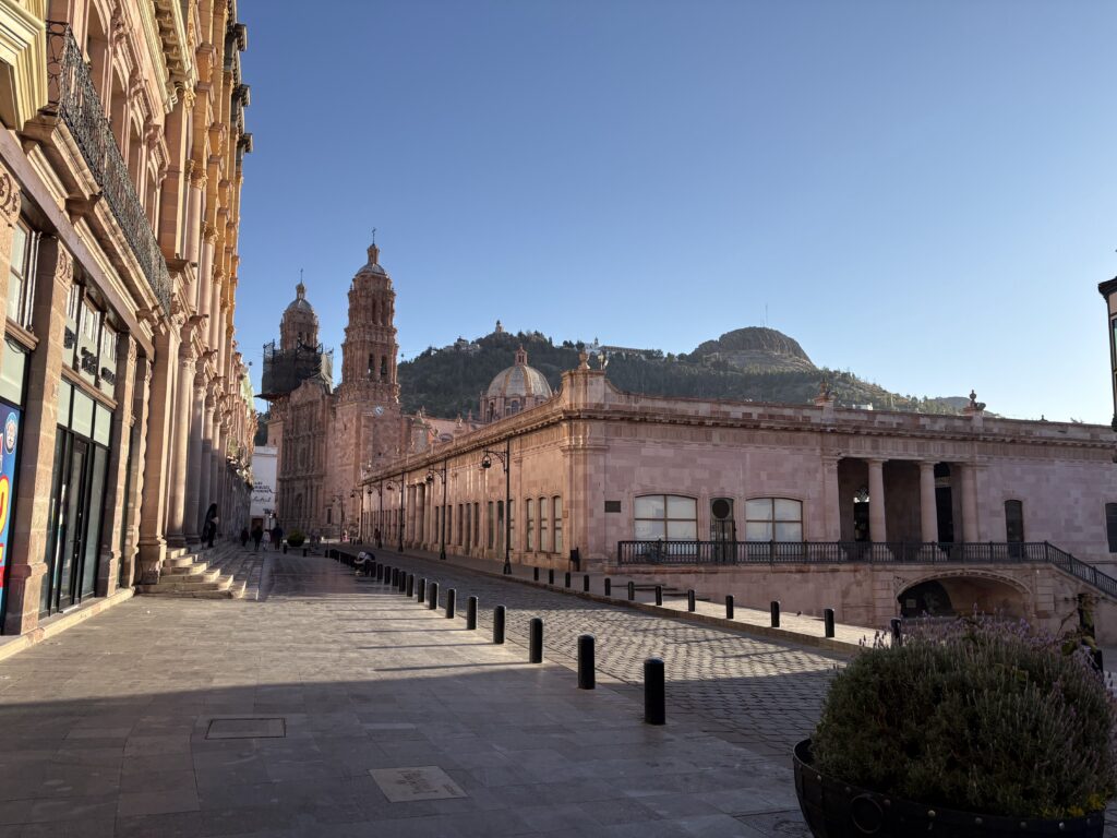 After our adventure-filled morning, we made our way to Zacatecas City, arriving with just enough time to enjoy a golden-hour stroll through the historic center. Known for its pink quarry stone buildings and baroque architecture, Zacatecas truly feels like walking through a storybook.